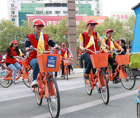 4月14日,南湖區(qū)文明辦在八佰伴廣場組織開展“七大文明行動”系列活動。公共自行車公司積極參與,調(diào)運了50輛公共自行車助力“七大文明行動”系列活動啟動,50位身穿紅色馬甲的文明志愿者騎著插有“迎接G20 人人講文明”的小旗子的公共自行車騎行在禾城街頭,倡導(dǎo)文明出行,提升廣大市民的文明素質(zhì),提高社會文明程度。