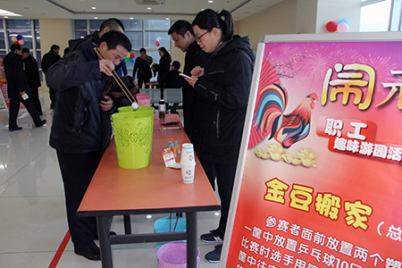 活動從2月8日到11日持續(xù)4天,共設(shè)置了“趕雞入欄、迷你投籃、飛鏢搶分”等10個娛樂項目。這些活動項目趣味性強、參與門檻低,引起了廣大職工的濃厚興趣,大家摩拳擦掌、躍躍欲試。在“掌聲明珠”活動場地上,選手們手持放有乒乓球的乒乓拍,快速穩(wěn)健地繞乒乓桌行走;再看“金豆搬家”項目,一個個動作靈活,手法穩(wěn)準,很快就完成了任務(wù),贏得了高分?;顒蝇F(xiàn)場氣氛熱烈,到處充滿了歡聲笑語,爽朗的笑聲一浪高過一浪,不斷將游園活動推向高潮。當(dāng)大家最后從工作人員手中接過活動獎品時,個個都笑容滿面地說著“開心”和“感謝”。