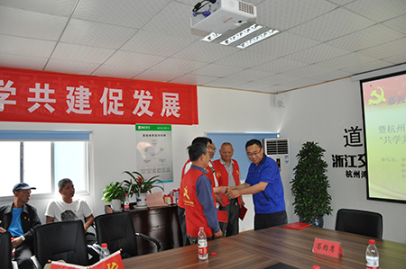 在會(huì)上,村、項(xiàng)目部黨組織互贈(zèng)黨史書(shū)籍,向推薦為“項(xiàng)目推進(jìn)協(xié)調(diào)員”的翁村村陸水生等4名黨員發(fā)放聘任書(shū)。