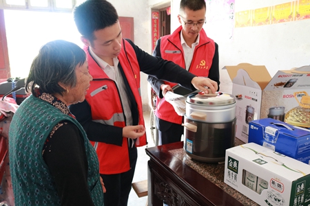 10月17日,嘉興南黨支部黨員志愿者一行人前往結(jié)對(duì)幫扶的徐大姐家,送上精心挑選的電飯煲、食用油和牛奶等慰問(wèn)品,點(diǎn)亮他們的“微心愿”。嘉興南黨支部的志愿者們用實(shí)際行動(dòng)將困難居民的小小心愿實(shí)現(xiàn),將黨的關(guān)懷送到了困難居民的心坎上。