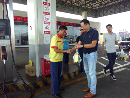 在調(diào)研結束后,周大勇對在高溫下作業(yè)的加油站員工進行了慰問,感謝他們?yōu)榧佑驼靖冻龅男燎趧趧樱蠊疽P心他們的工作和生活,使所有員工能享受到大家庭的關愛和溫暖。