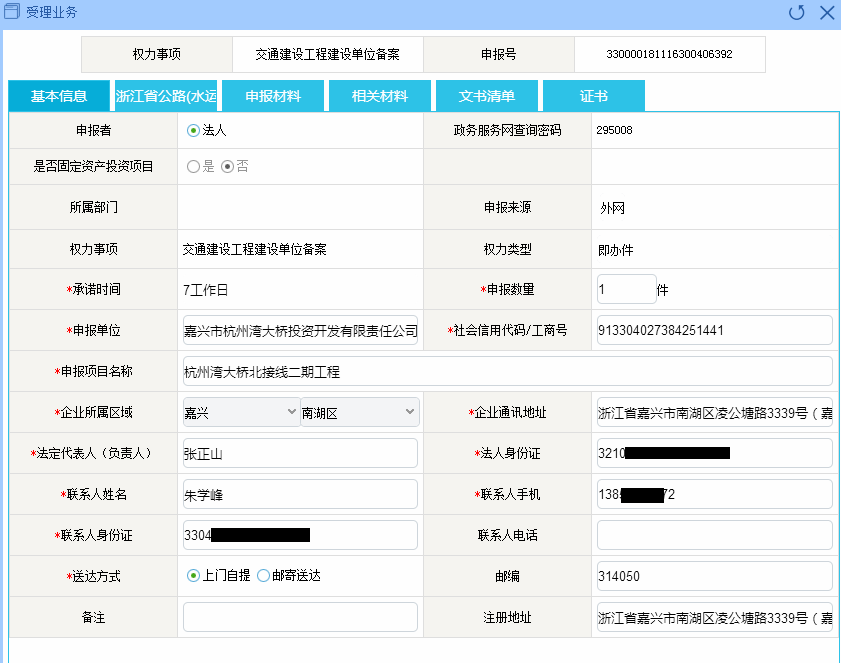 灣北二期工程建設(shè)單位備案服務(wù)信息